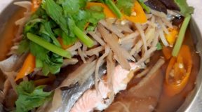 - ใส่ต้นหอมหั่น พอน้ำซุปเริ่มเหนียว ปิดไฟ ตักใส่จานเสิร์ฟ